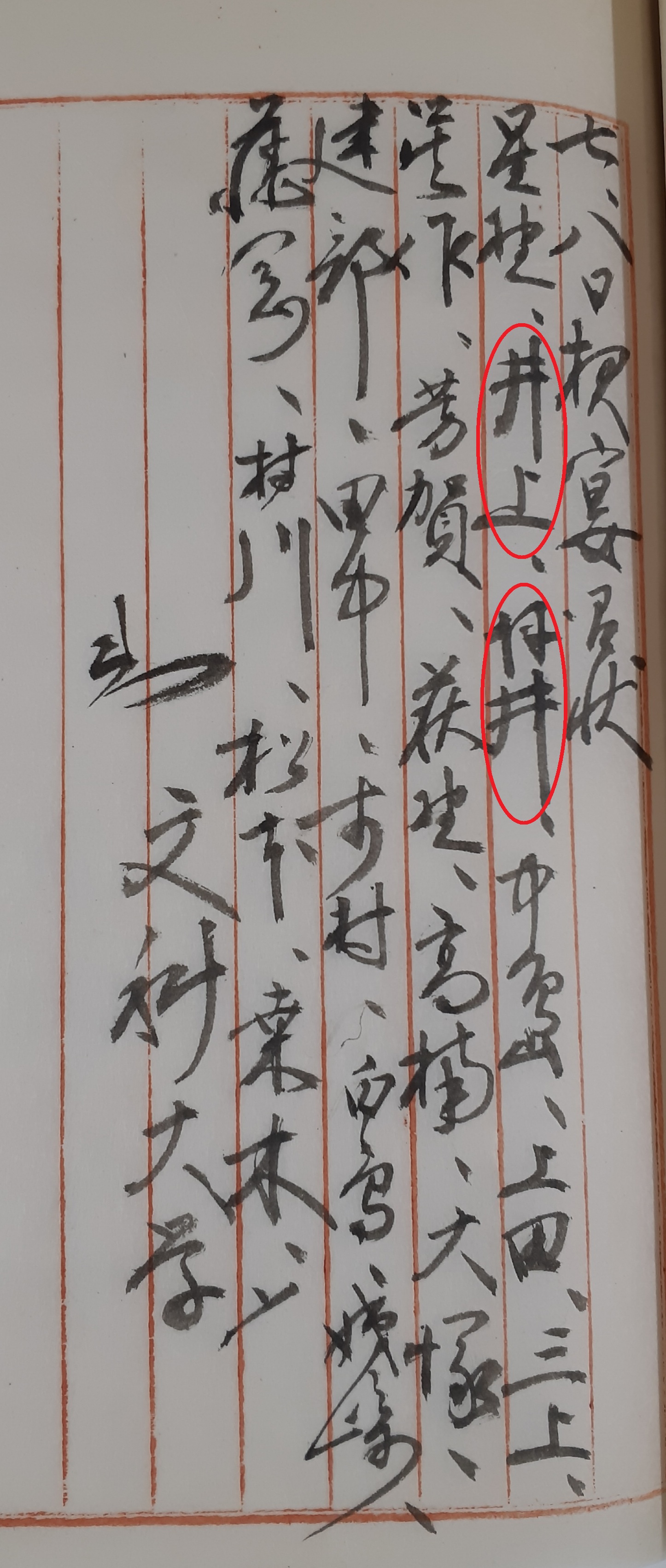 当館所蔵の、文部省と本学との往復文書「文部省往復 大正四年」では、文部大臣官房秘書課長から12月2日に大学に届いた「宮中ニ於テ催サルヽ夜宴召状伝達方ノ件」に対する、本学の出席者を取りまとめた文書に、坪井や、同じく文科大学教授井上〔哲次郎〕の名もありました(S0001/Mo141/0020)。井上の日記(「巽軒日記」)も当館に寄贈されており、同年12月8日には「夜、宮中の夜宴に赴き、能楽を陪観す」と記されていたのです(F0005/01/0023)。