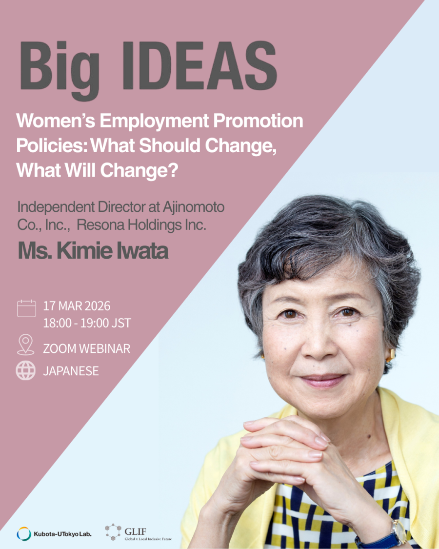 While the Gender Equality Bureau was established within the Cabinet Office in 2001, Japan’s progress remains slow, ranking 118th out of 148 countries in the World Economic Forum’s Gender Gap Index in 2025. In an era where women in key positions are still rare, how does Ms. Kimie Iwata, having built an impressive career, perceive the current situation? The discussion will focus on four areas: (1) urgent measures needed in women’s employment policy; (2) priority measures for improving work-life balance; (3) the low proportion of women in management positions; and (4) the issue of permanent vs. temporary employment.