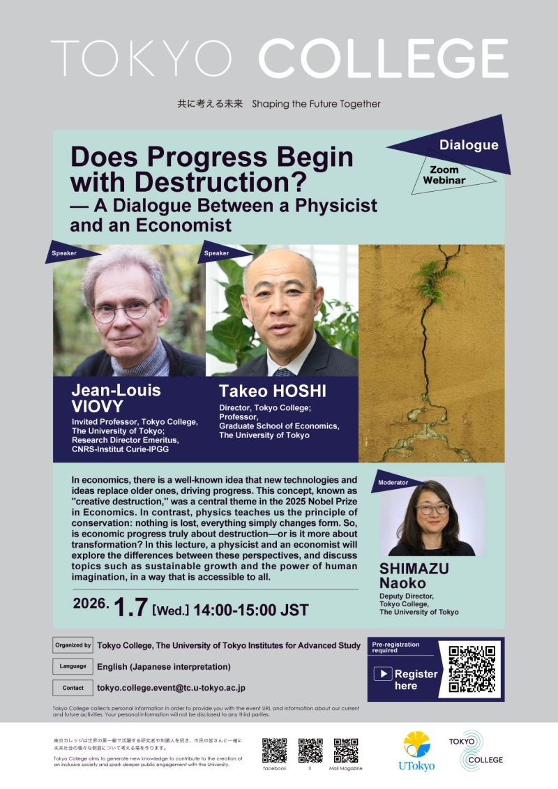 Tokyo College Event: "Does Progress Begin with Destruction? — A Dialogue Between a Physicist and an Economist"