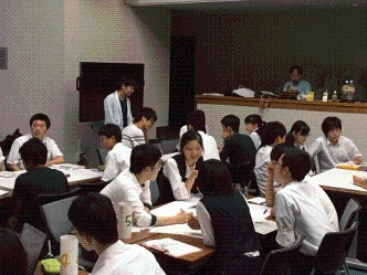 ![]() 未来の旅客機について話し合う高校生