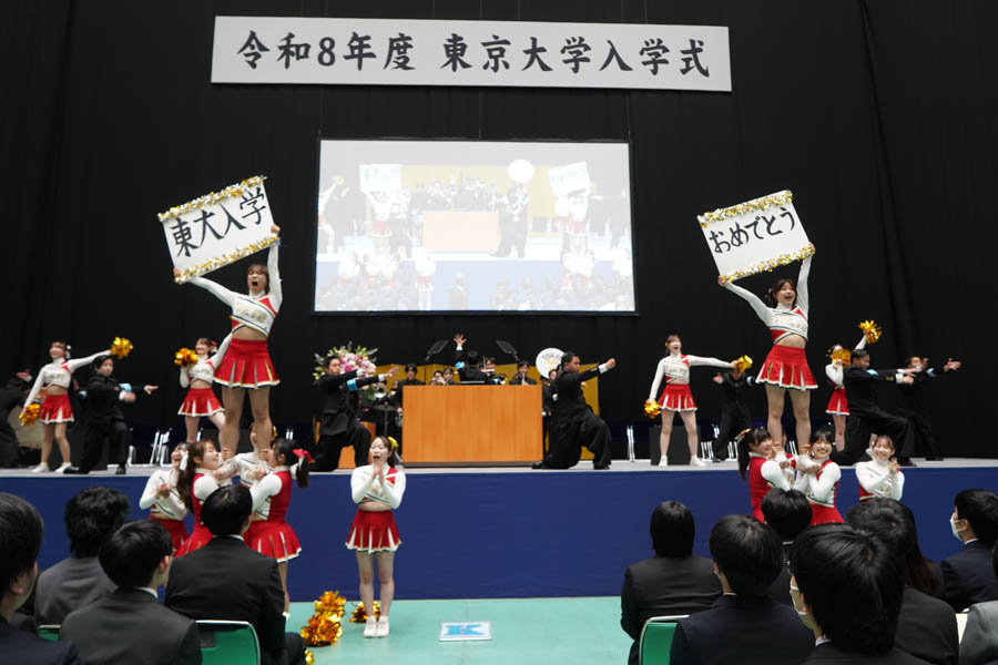 式では、大学を代表して藤井 輝夫(ふじい てるお)総長から式辞が述べられ、続いて伊藤 耕一(いとう こういち)新領域創成科学研究科長が式辞を述べました。式辞の後、来賓の国際連合事務次長・軍縮担当上級代表 中満 泉 様および東京大学校友会 國部 毅 会長から祝辞をいただきました。その後、入学生総代 杉本 智美 (すぎもと ともみ)さん(総合文化研究科)による宣誓が行われました。