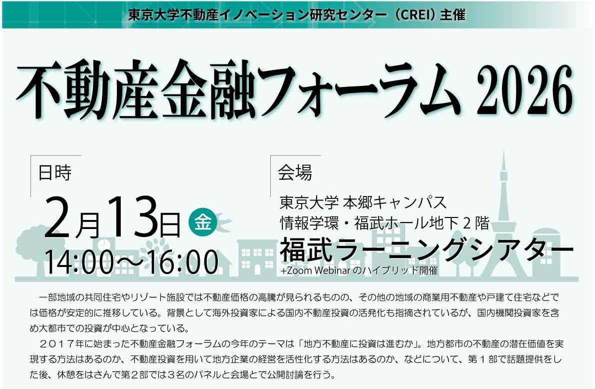 東大CREI主催『不動産金融フォーラム2026』