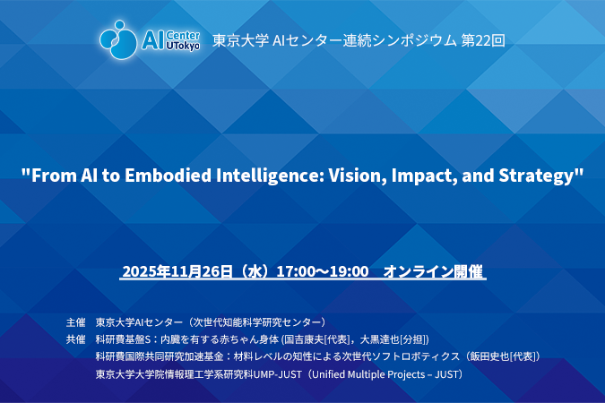 | お問い合わせ先 | 東京大学AIセンター(次世代知能科学研究センター) symposium-office▲ai.u-tokyo.ac.jp (「▲」を「@」記号に換えてください) |