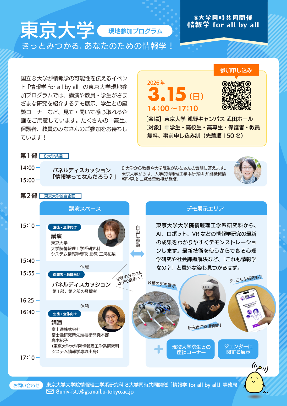 | お問い合わせ先 | 東京大学大学院情報理工学系研究科 8大学同時共同開催「情報学 for all by all」事務局 |