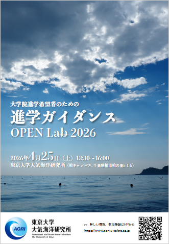 | お問い合わせ先 | 大気海洋研究所 進学ガイダンス担当 open_lab@aori.u-tokyo.ac.jp |