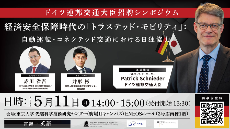 東京大学先端科学技術研究センター(RCAST)経済安全保障インテリジェンス分野(ESIL)は、駐日ドイツ連邦大使館と共催で、以下の公開シンポジウムを開催いたします。