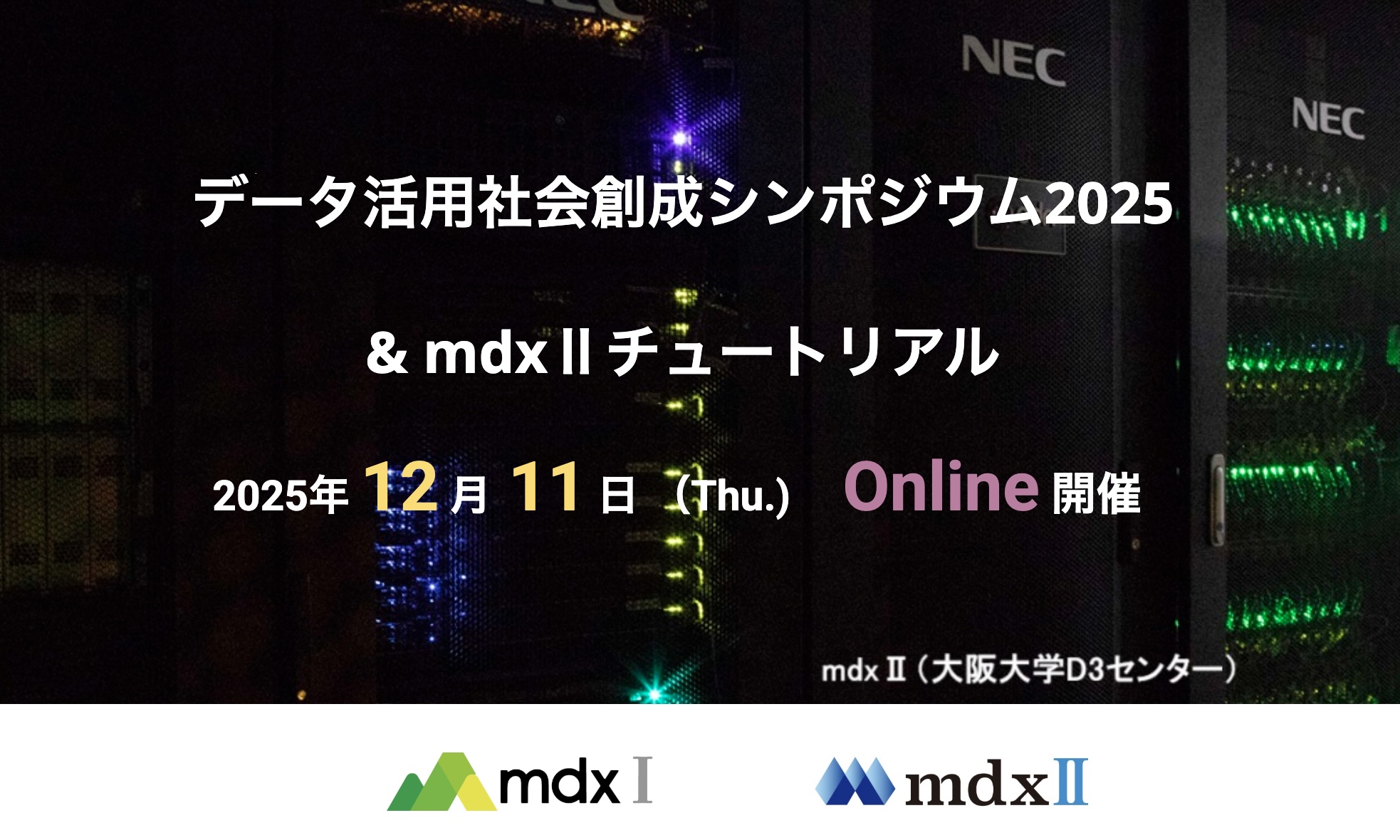 2025年12月11日(木)に、「データ活用社会創成シンポジウム2025 & mdx II チュートリアル」をオンラインで開催します。