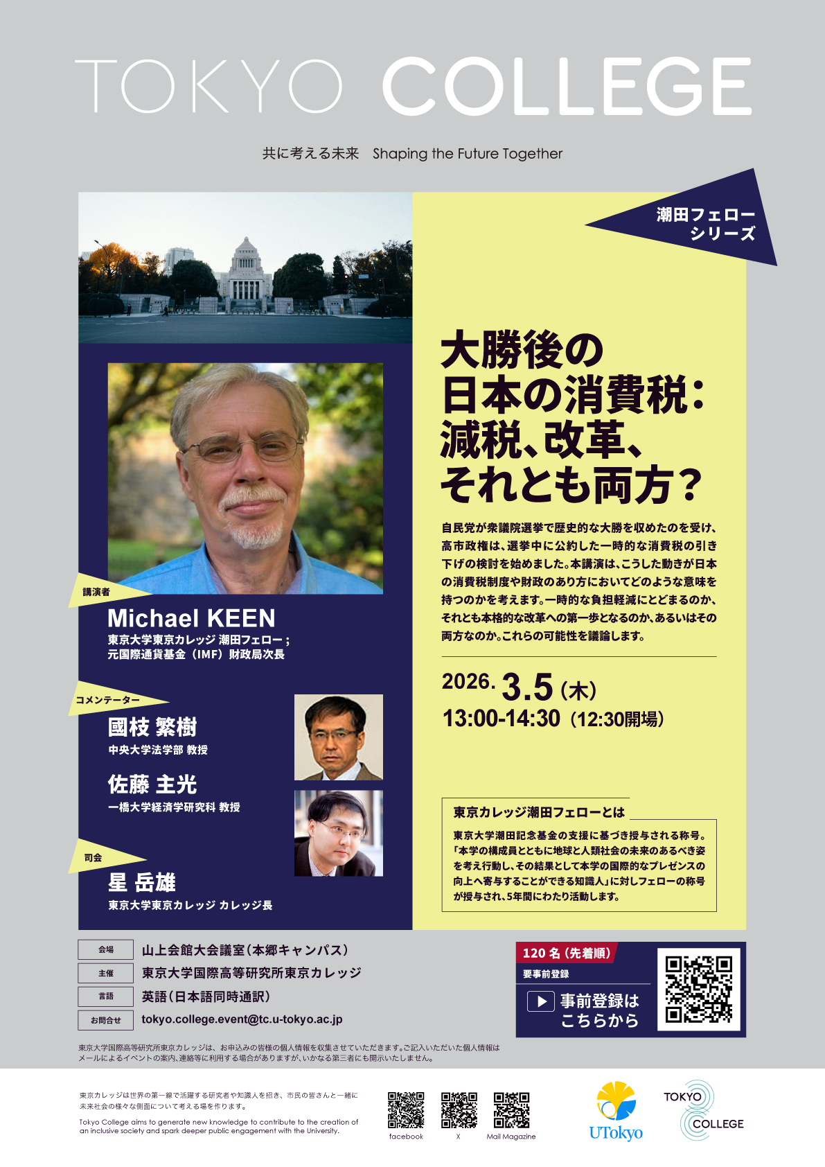 東京カレッジ講演会「大勝後の日本の消費税:減税、改革、それとも両方?」