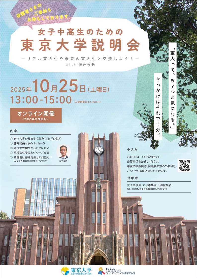 女子中高生のための東京大学説明会 ーリアル東大生や未来の東大生と交流しよう!ー with 藤井総長