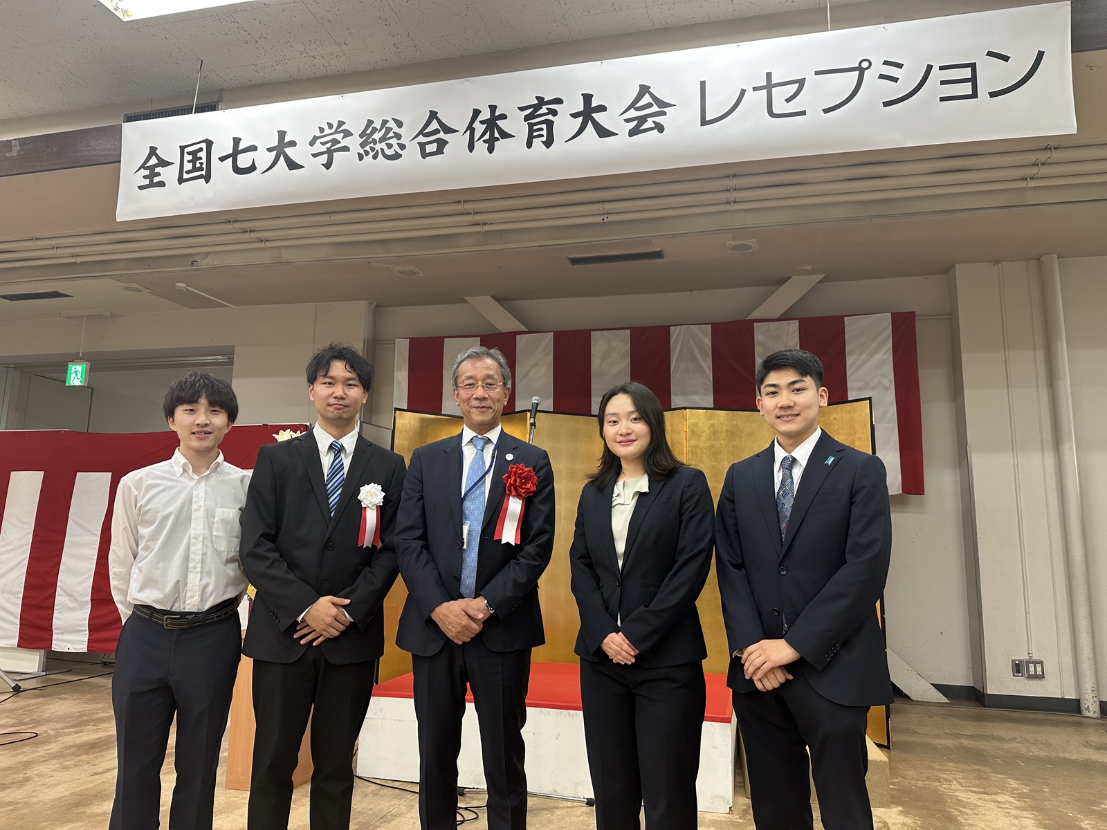 北海道大学で開催された第64回全国七大学総合体育大会開会式に出席しました。本学は史上最高得点での優勝を目指しており、学生の皆さんが様々な競技で励んでいます。